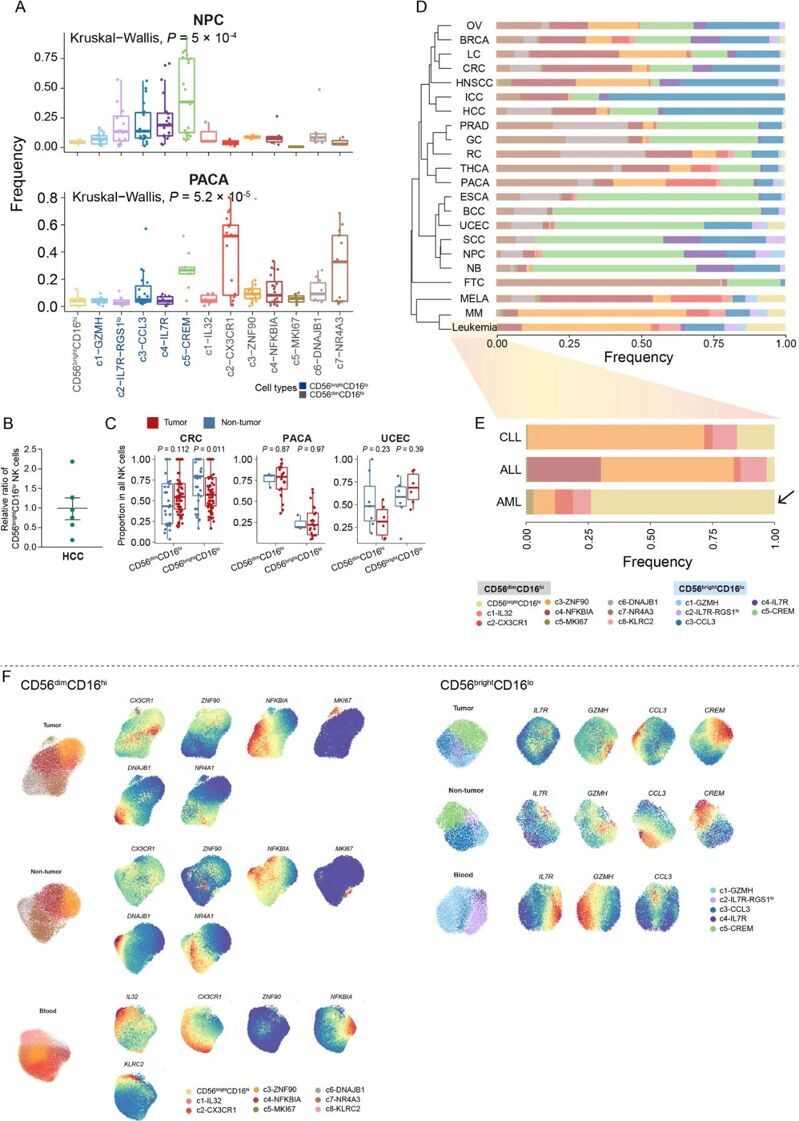 不同癌症类型中肿瘤浸润NK细胞群的异质性